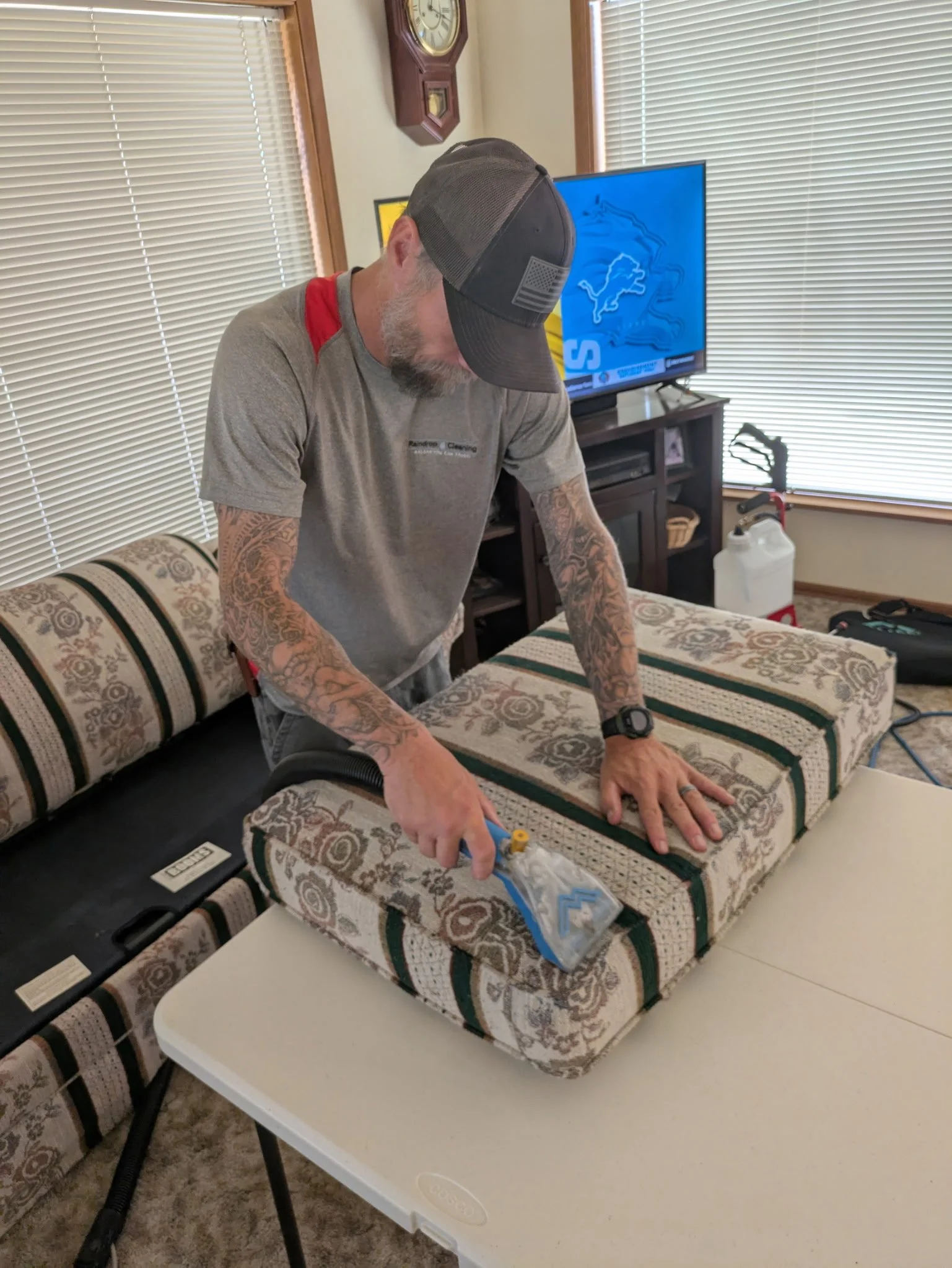 We service all types of materials, including microfiber, velvet, leather, and synthetic blends, ensuring your couches, sectionals, benches, and headboards regain their original comfort and aesthetic appeal. At Raindrop Cleaning, clear communication and transparency are key; we guide you through our process and deliver dependable results you can trust.